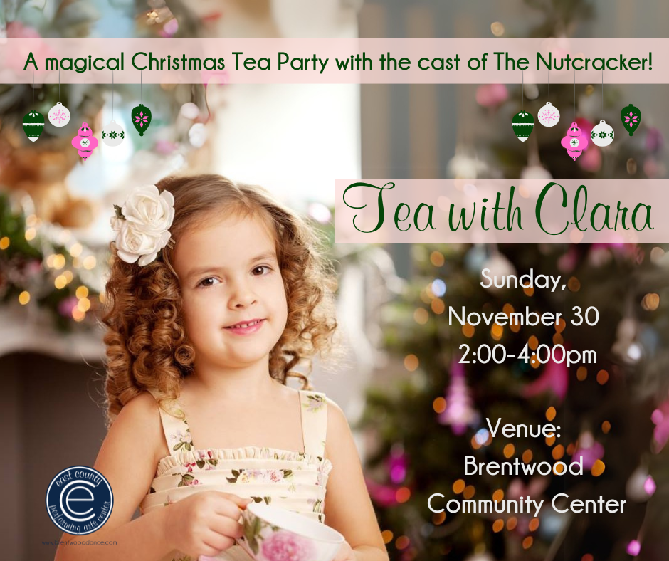 Tea with Clara is a magical holiday experience where children and families can enjoy a delightful tea party with characters from The Ballet Company of East County’s production of The Nutcracker!